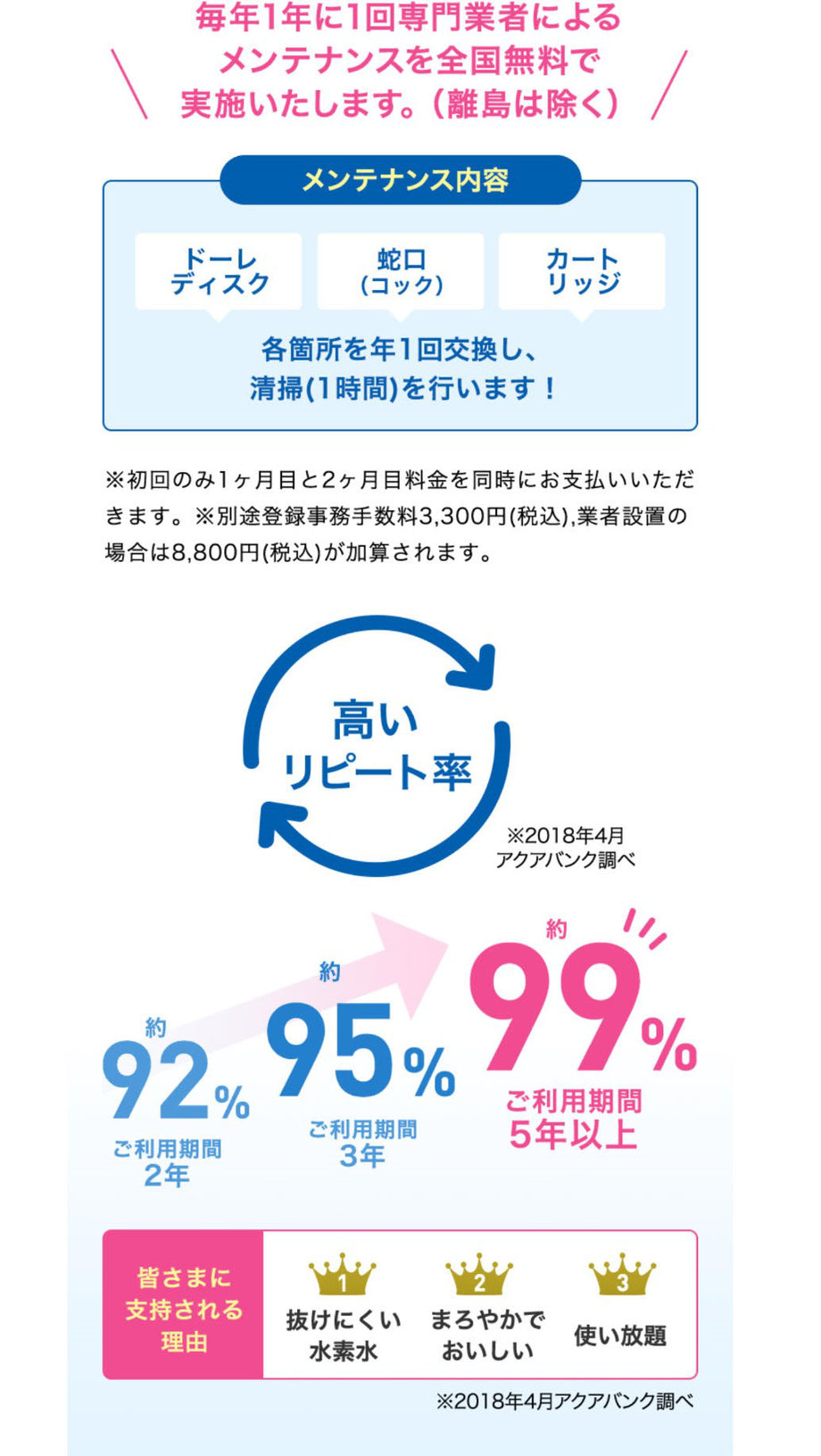 ※「簡単セルフ設置コース」業者設置コース」のどちらのコースも設置時間は約45分(組立15分、通水30分)です。